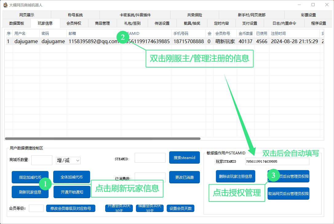 现在你可以断开与挂机电脑的远程,先尝试尝试购买物品,领取礼包等等各类功能,我们已经预设好了大部分数据。查看各类功能后,再根据你自己的需求对商城进行调整。