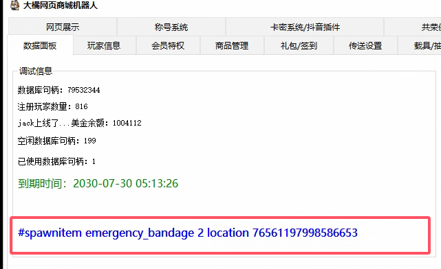 值得注意的是在【软件后台】的的最下方可以看到商城【最近发出去的一条代码】用来核对发送内容等