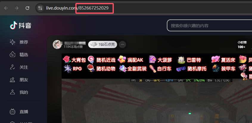 - 1.填写自己的直播间号,直播间号为访问你直播间的网页上的一串数字
