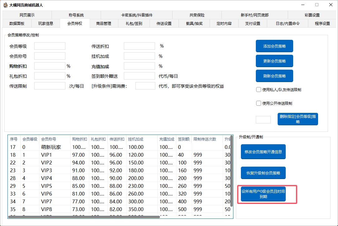 设置所有玩家会员0级然后到期时间也到期。