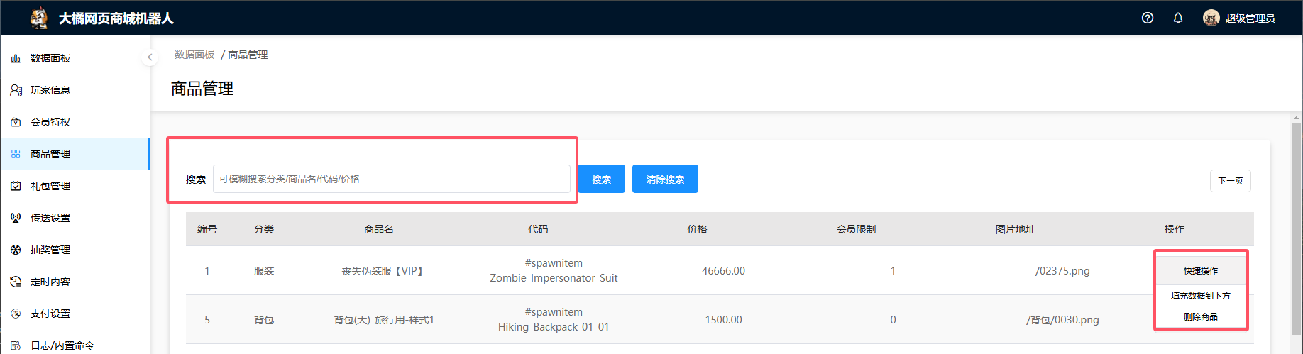 - 填充数据到下方【将你选择的这个商品数据填充到下方商品控制区便于进行编辑和修改】