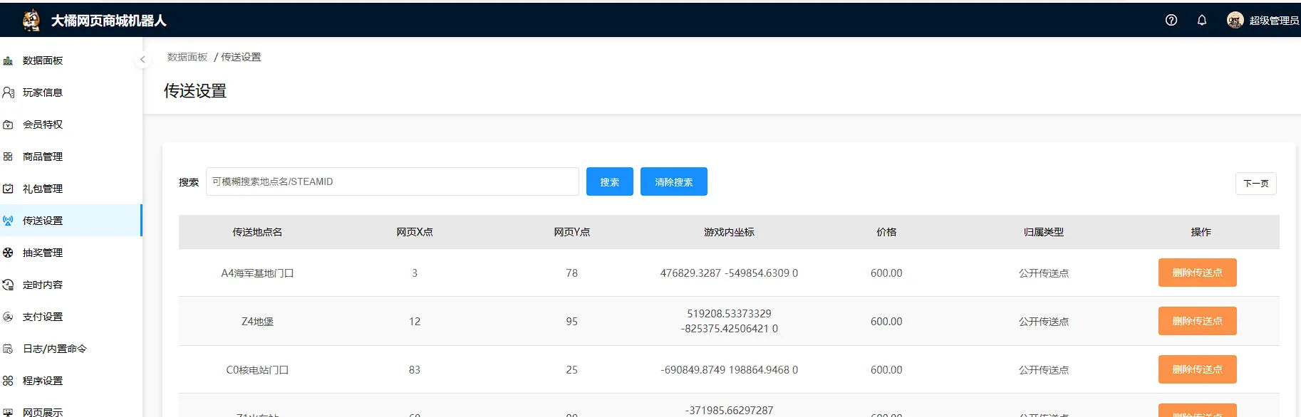 - 我在网页无法删除极少数传送点?答:名字比较奇葩的传送点名字是无法从网页上删除的,需要从商城主程序上点击删除!