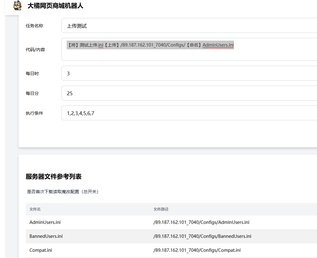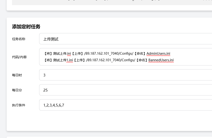 - 2.根据服务器文件参考列表 来添加定时任务 代码内容格式如下👇下面带【】的关键词必须要保持,是强制要求格式。